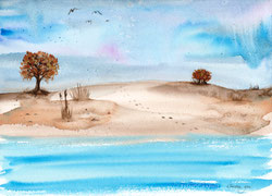 Die Originale sind gemalt mit hochwertigen Aquarellfarben von Winsor & Newton und Daniel Smith, auf Aquarellpapier von Hahnemühle, Lana, Winsor & Newton oder boesner. Jedes wird handsigniert.