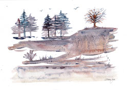 Originale in Aquarell auf 24 x 32 cm großes Hahnemühlepapier 300 g/m2, coldpressed, matt. Gemalt mit Winsor & Newton und Daniel Smith Farben. Fotomotive zur Verfügung gestellt von Eva Frischling. Die Landschaft Islands ist durch Vulkanismus und Wasserreichtum geprägt. So gibt es zahlreiche, zum Teil aktive Vulkane, Flüsse, Seen und Wasserfälle. Die Fauna Islands ist wenig artenreich aufgrund des ozeanischen Klimas, es gibt allerdings eine Vielfalt an Vögeln, am bekanntesten mit 3-4 Mio Paaren ist der Papageientaucher.