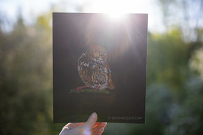 ""Ich habe bereits einige Werke von Christine erworben und freue mich jeden Tag an ihnen. Insbesondere das liebevoll gestaltete Seelenbild unserer verstorbenen Katze wird bei uns in Ehren gehalten. Christine hat das Wesen unserer lieben Rose klarer eingefangen und zu Papier gebracht, als es ein Foto jemals könnte. Besonders faszinierend ist auch das Bild „Adler und Kondor“ das wir unserem Sohn geschenkt haben. Christines Werke zeichnen sich durch einen klaren Stil aus, der gleichzeitig viel Raum gibt zum Träumen, sich verbinden und ankommen. Sie sind herzverbunden. Christine fühlt, was sie malt. Das sieht man. Auch in ihrem Fotografien schwingt diese Natürlichkeit mit. So wirken alle Bilder als wären sie spontan entstanden und niemals steif oder gestellt. Wenn ihr in eure Räume mit Leichtigkeit, Natürlichkeit und Liebe zu Gottes Geschöpfen aufladen wollt, dann kuckt euch ein Werk von Christine aus. ~ Melina