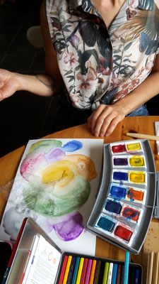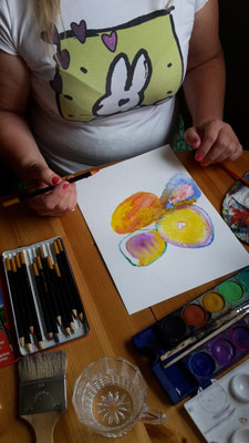 haben. Als ich nach dem Malen wieder zuhause war, breitete sich ein Glücksgefühl in mir aus. Ich werde weiter mit Farbe und Papier arbeiten, einfach ausprobieren. Es hat mir so viel Spaß